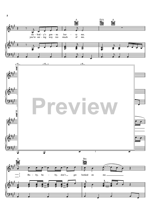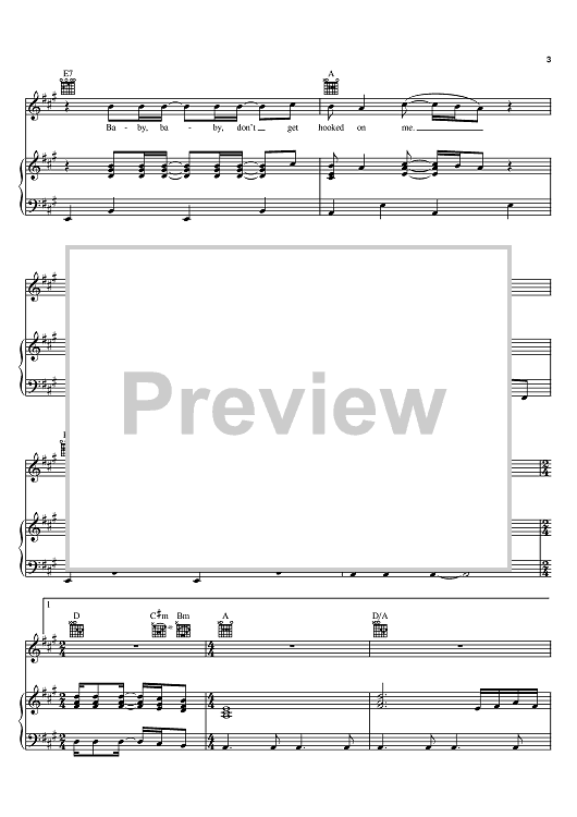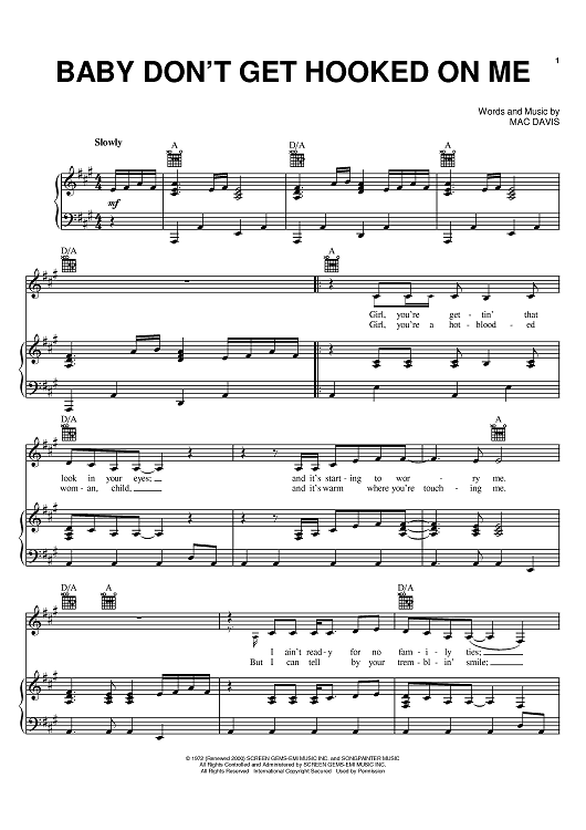 Digital Sheet Music for Baby Don't Get Hooked On Me by Mac Davis scored for Piano/Vocal/Chords; id:395035