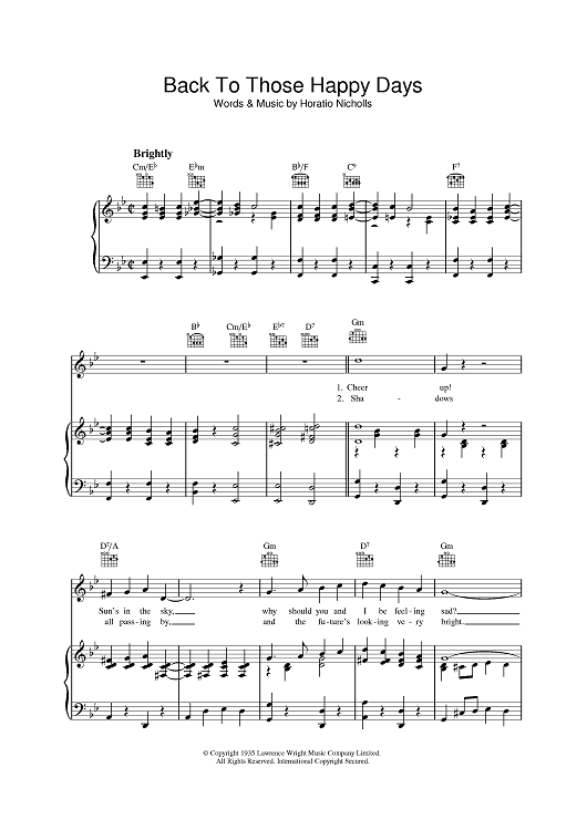 Digital Sheet Music for Back To Those Happy Days by Horatio Nicholls scored for Piano/Vocal/Chords; id:395007