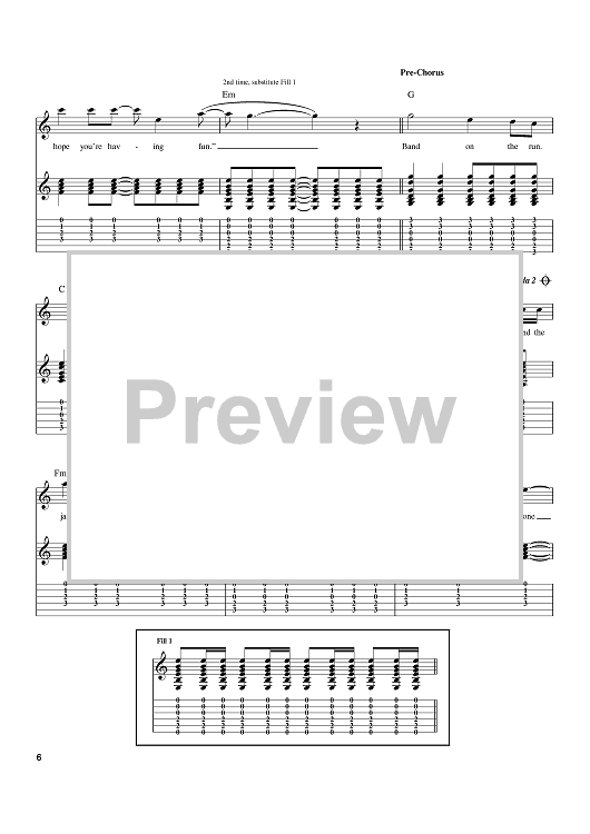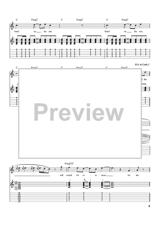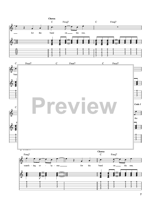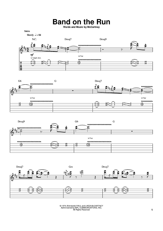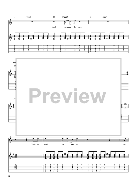 Digital Sheet Music for Band On The Run by Paul McCartney, Linda McCartney scored for Guitar Tab; id:395282
