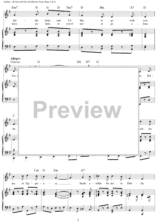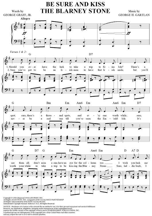 Digital Sheet Music for Be Sure and Kiss the Blarney Stone by George H. Gartlan, George Graff Jr. scored for Piano/Vocal/Chords; id:268936