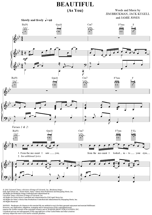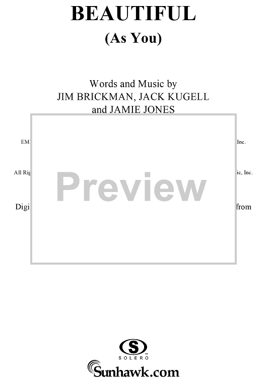 Digital Sheet Music for Beautiful (As You) by Jim Brickman, Jack Kugell, Jamie Jones scored for Piano/Vocal/Chords; id:291087