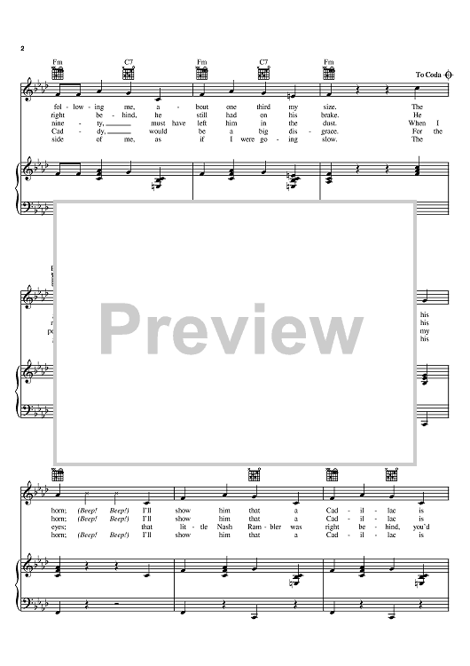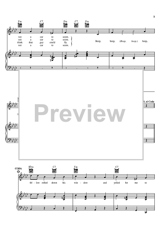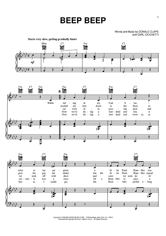 Digital Sheet Music for Beep Beep by Donald Claps, Carl Cicchetti, The Playmates scored for Piano/Vocal/Chords; id:395442