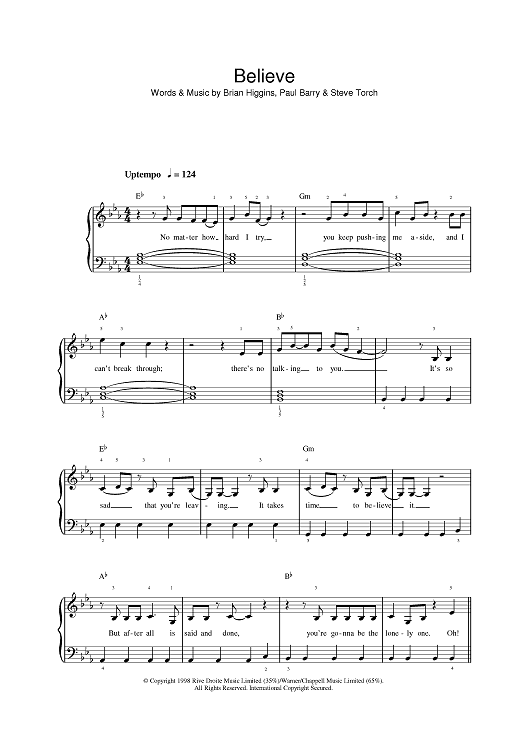 Digital Sheet Music for Believe by Cher, Brian Higgins, Paul Barry, Steve Torch scored for Piano/Vocal/Chords; id:394689