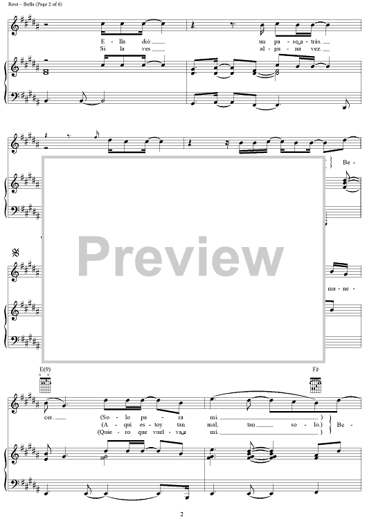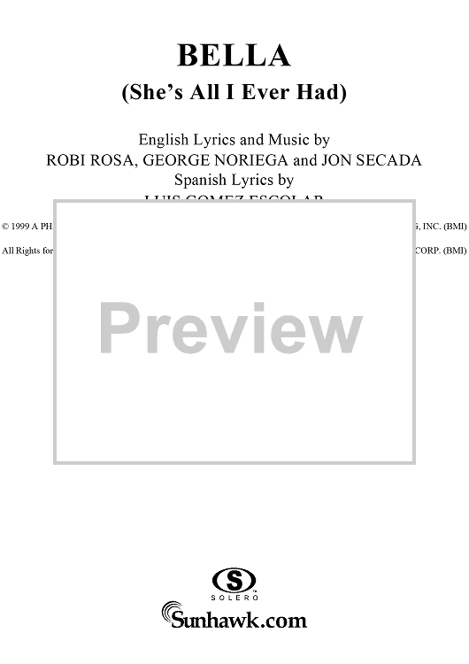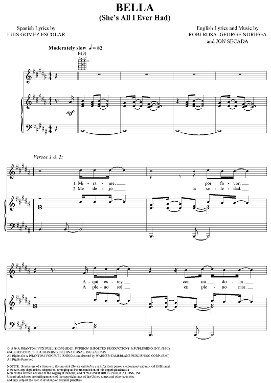 Digital Sheet Music for Bella (She's All I Ever Had) by Jon Secada, Robi Rosa, Ricky Martin, George Noriega, Luis Gomez-Escolar scored for Piano/Vocal/Chords; id:256148