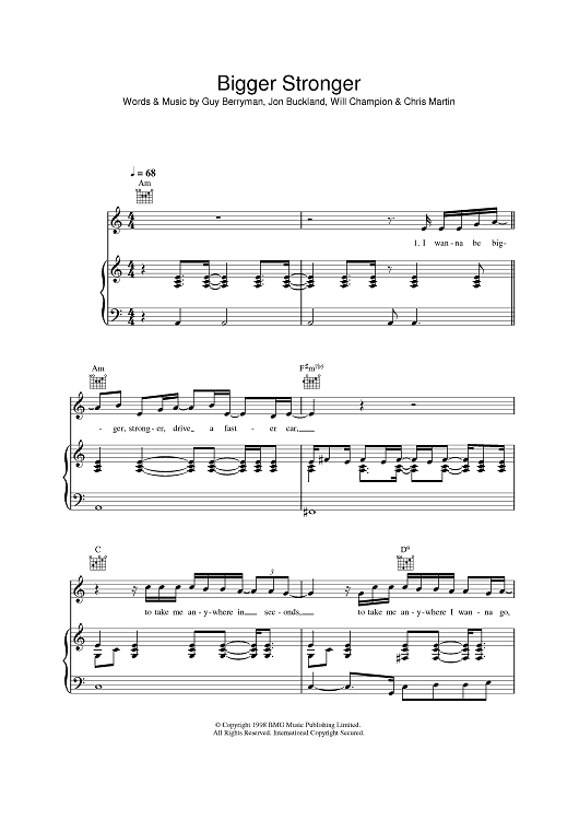 Digital Sheet Music for Bigger Stronger by Chris Martin, Coldplay, Jonny Buckland, Guy Berryman scored for Piano/Vocal/Chords; id:396818