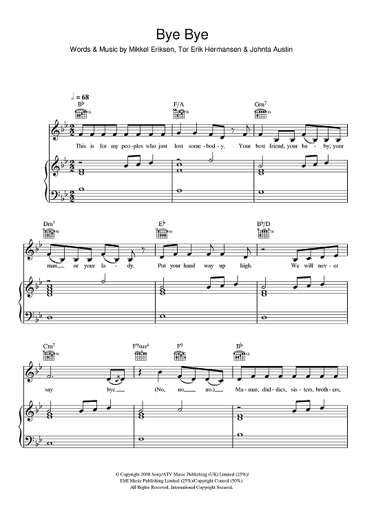 Digital Sheet Music for Bye Bye by Mariah Carey, Johnta Austin, Tor Erik Hermansen, Mikkel Eriksen scored for Piano/Vocal/Chords; id:418510