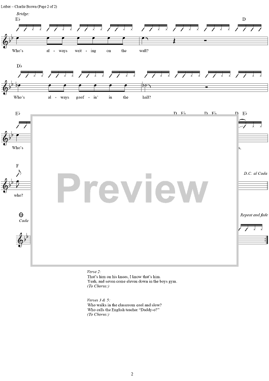 Digital Sheet Music for Charlie Brown by Jerry Leiber, Mike Stoller, The Coasters, Kenn Chipkin scored for Easy Guitar/Vocal; id:114044