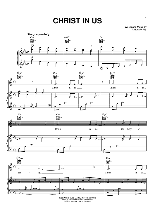 Digital Sheet Music for Christ In Us by Twila Paris scored for Piano/Vocal/Chords; id:370952