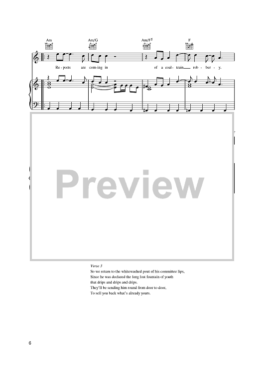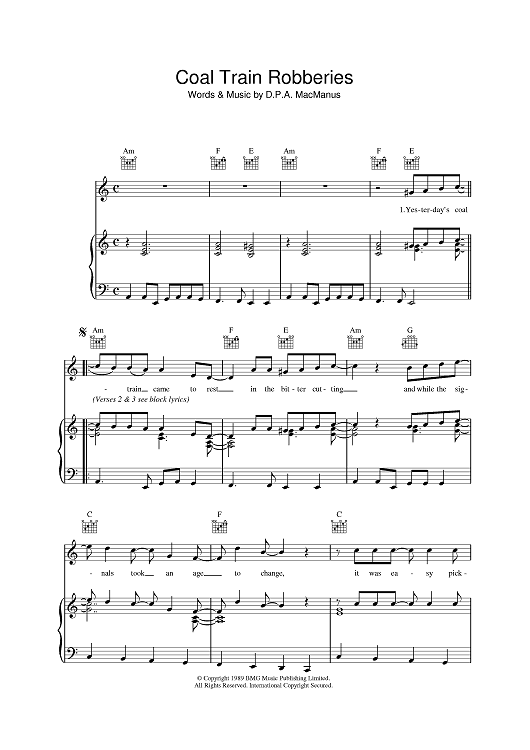 Digital Sheet Music for Coal Train Robberies by Elvis Costello scored for Piano/Vocal/Chords; id:401610