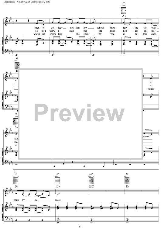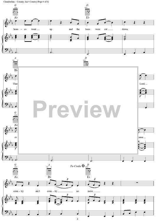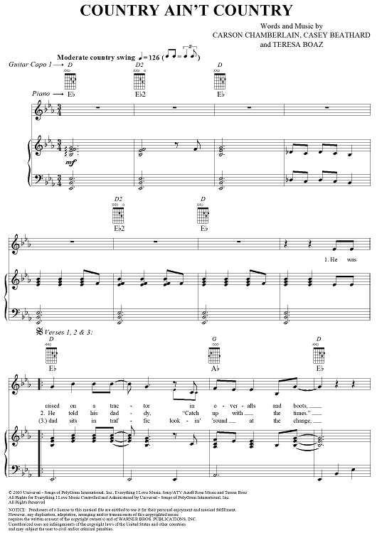 Digital Sheet Music for Country Ain't Country by Travis Tritt, Carson Chamberlain, Casey Beathard, Teresa Boaz scored for Piano/Vocal/Chords; id:295046