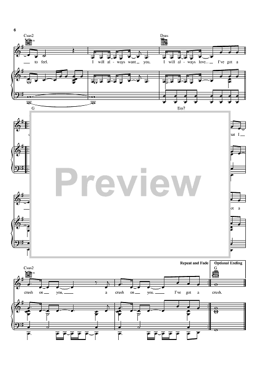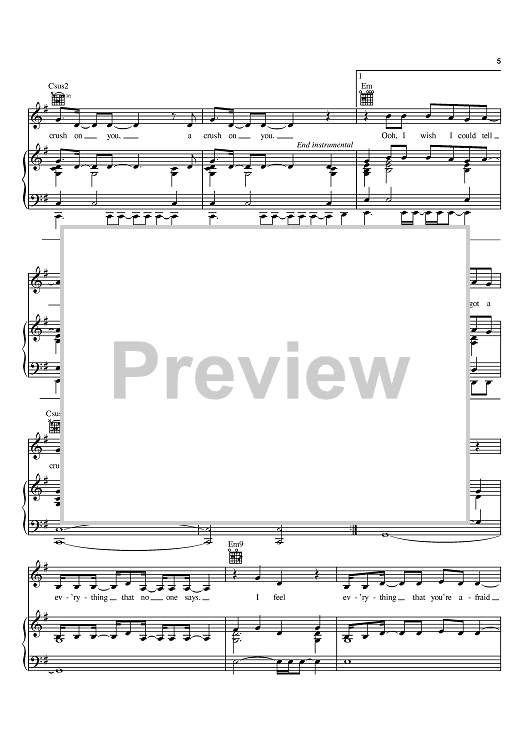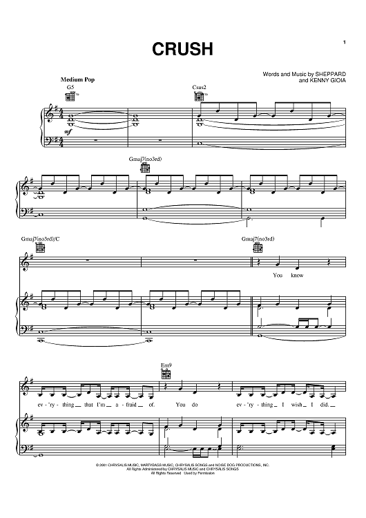 Digital Sheet Music for Crush by Mandy Moore, Kenny Gioia, Shep Goodman scored for Piano/Vocal/Chords; id:373563