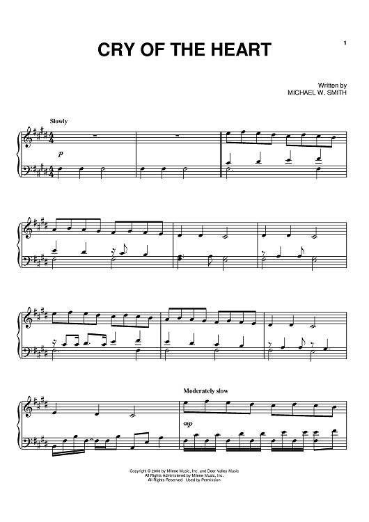 Digital Sheet Music for Cry Of The Heart by Michael W. Smith scored for Piano; id:367849
