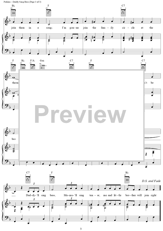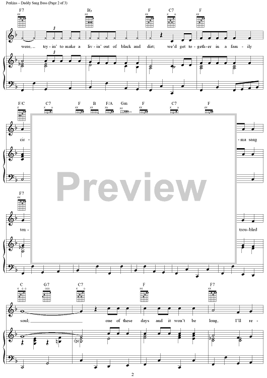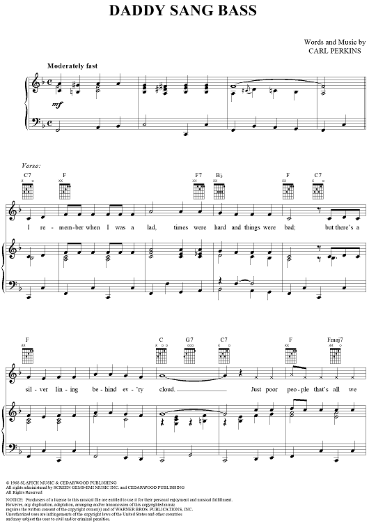Digital Sheet Music for Daddy Sang Bass by Carl Perkins scored for Piano/Vocal/Chords; id:254360