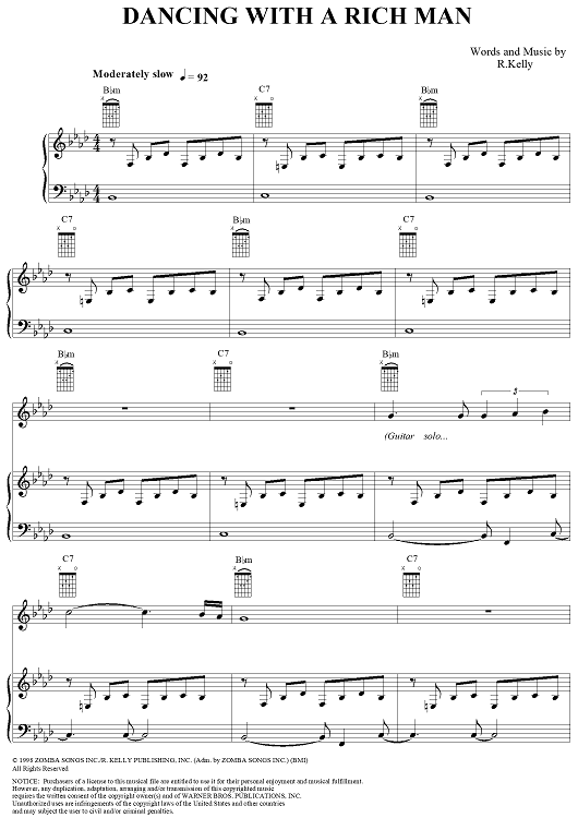 Digital Sheet Music for Dancing With a Rich Man by R. Kelly scored for Piano/Vocal/Chords; id:249929