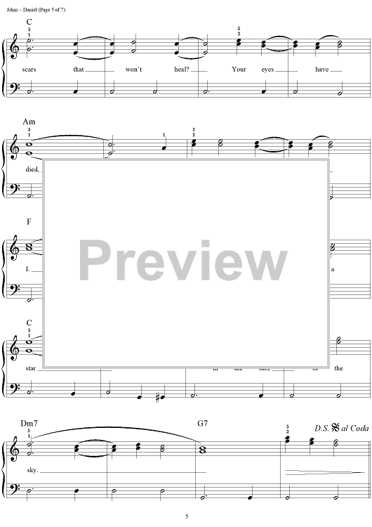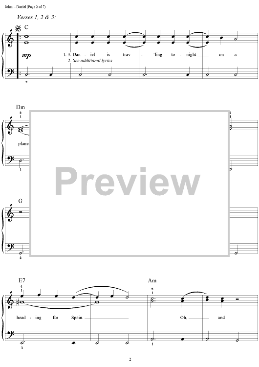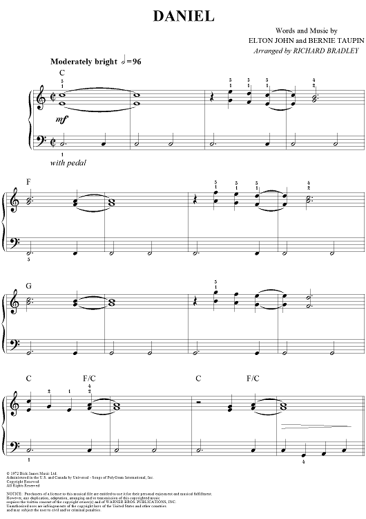 Digital Sheet Music for Daniel by Elton John, Bernie Taupin, Richard Bradley scored for Easy Piano; id:289143