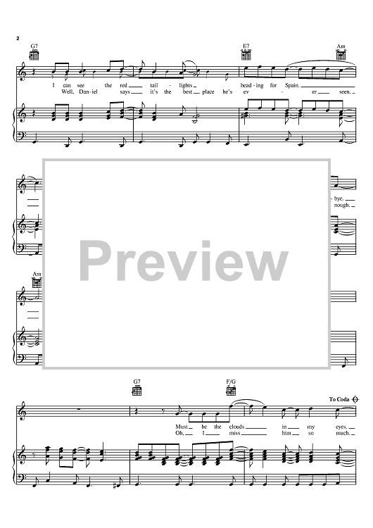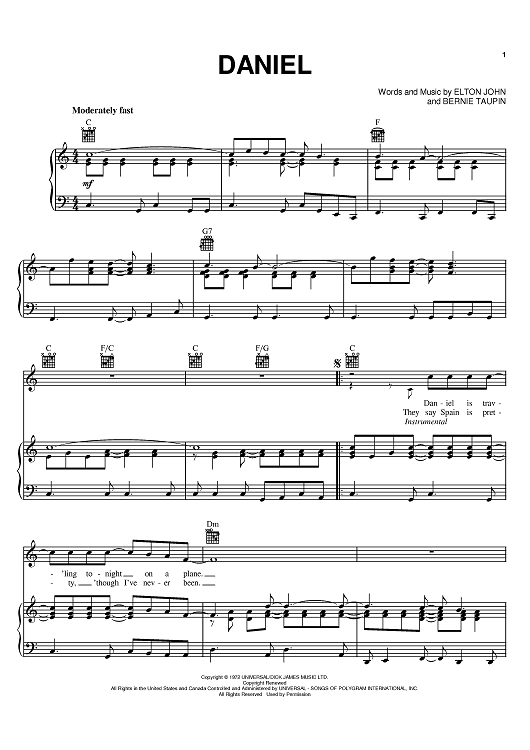 Digital Sheet Music for Daniel by Elton John, Bernie Taupin scored for Piano/Vocal/Chords; id:383684
