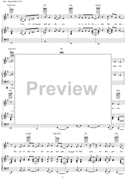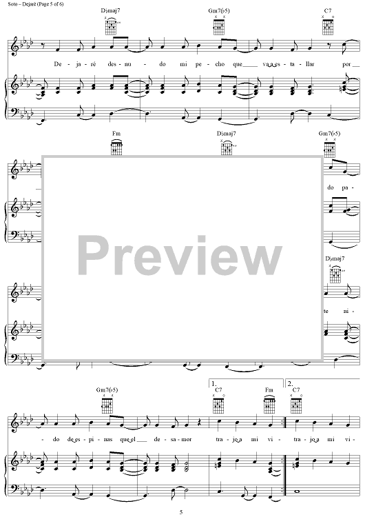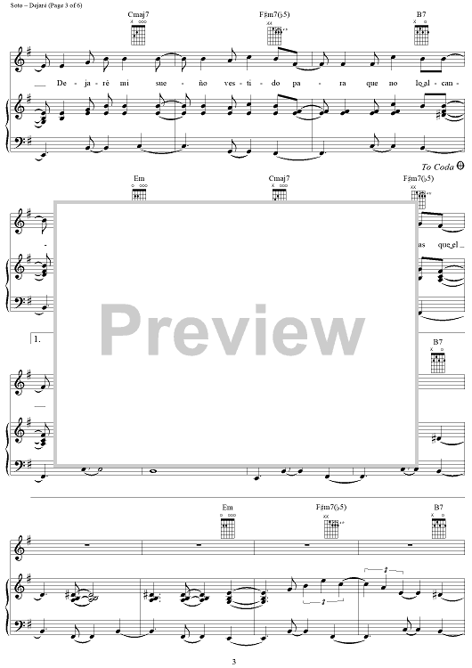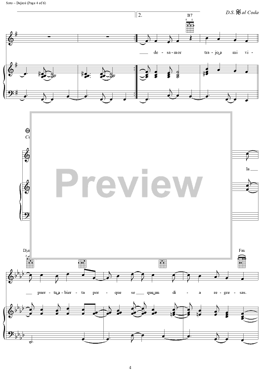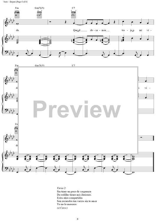 Digital Sheet Music for Dejaré by Juan Carlos Perez Soto scored for Piano/Vocal/Chords; id:234770