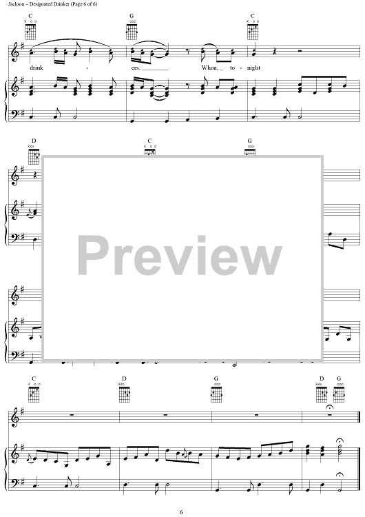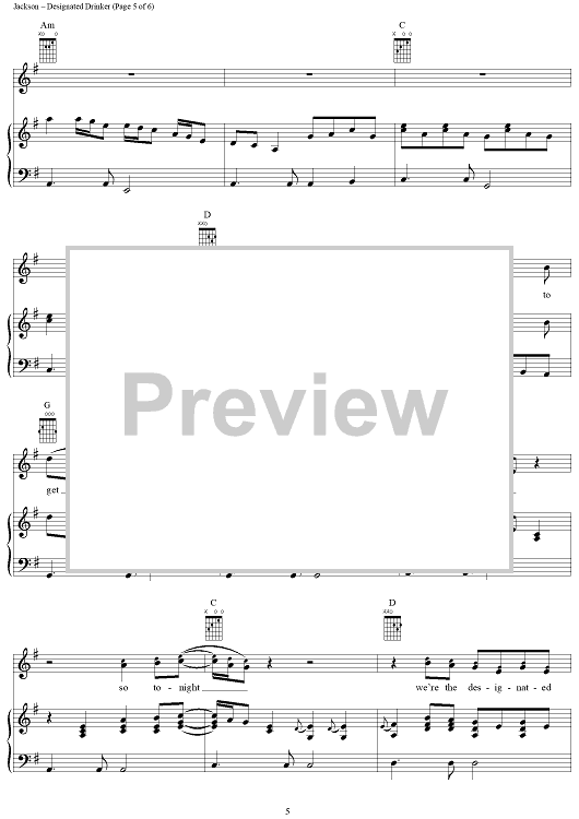 Digital Sheet Music for Designated Drinker by Al Jackson Jr scored for Piano/Vocal/Chords; id:367858