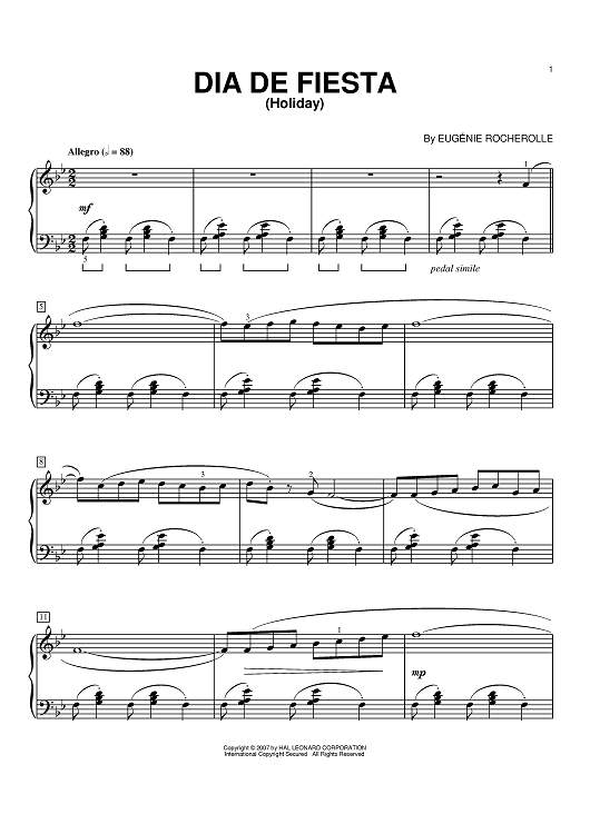 Digital Sheet Music for Dia De Fiesta (Holiday) by Eugénie R. Rocherolle scored for Piano; id:395120
