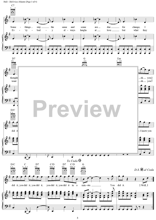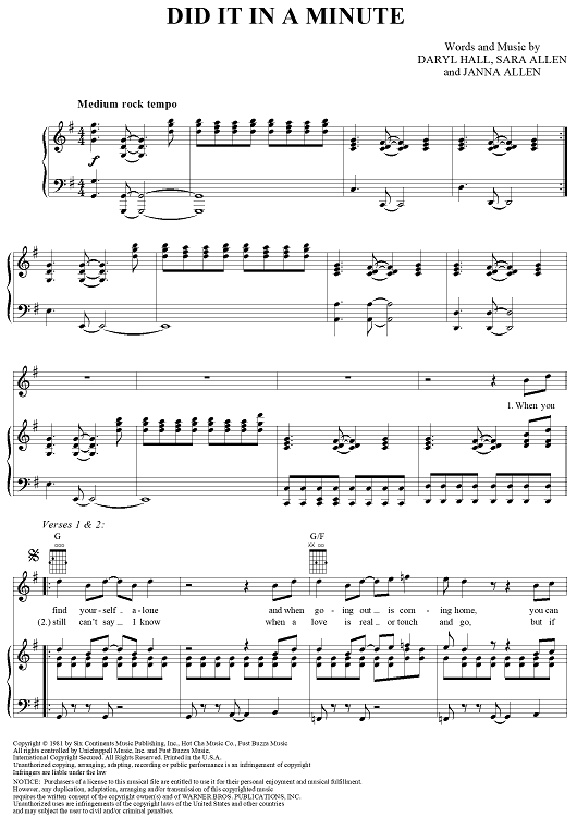 Digital Sheet Music for Did It in a Minute by Daryl Hall, Sara Allen, Janna Allen scored for Piano/Vocal/Chords; id:355951