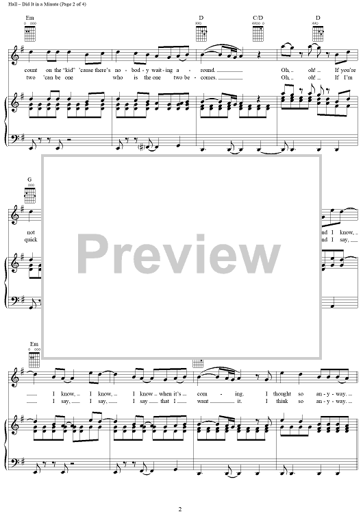 "Did It in a Minute" Sheet Music by Hall & Oates