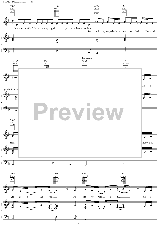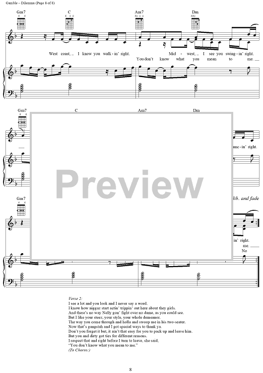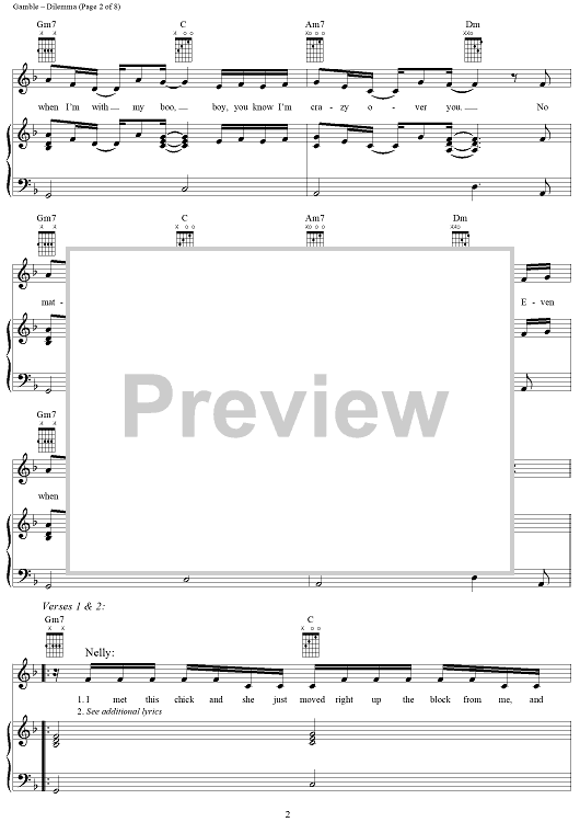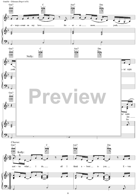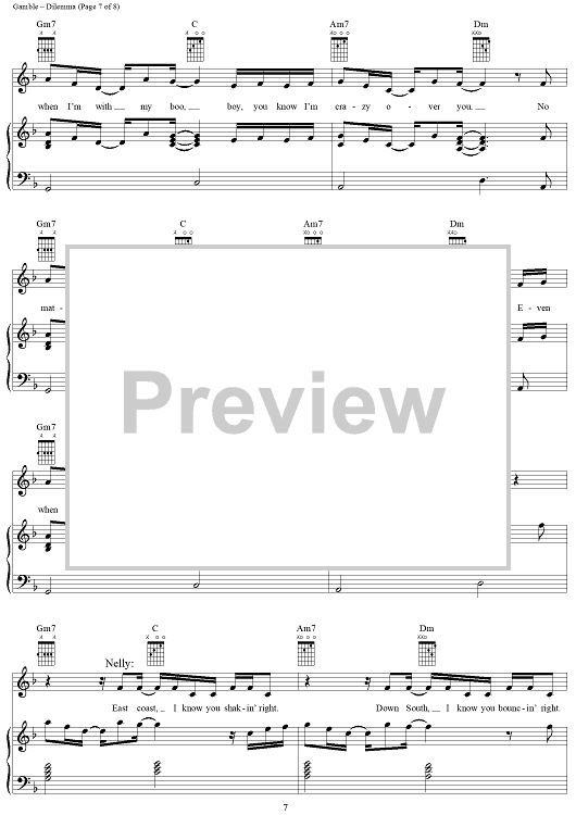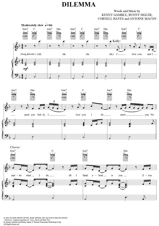 Digital Sheet Music for Dilemma by Kenneth Gamble, Nelly, Kelly Rowland, Bunny Sigler, Cornell Hayes, Antoine Macon scored for Piano/Vocal/Chords; id:292002
