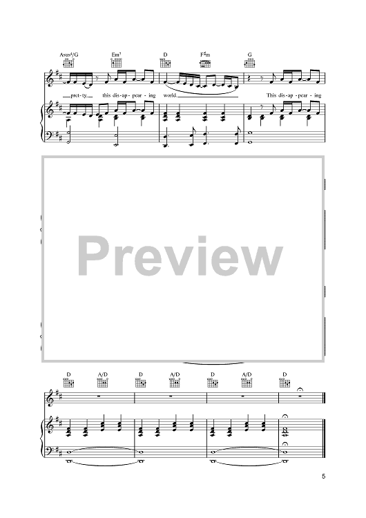 Digital Sheet Music for Disappearing World by David Gray scored for Piano/Vocal/Chords; id:386346