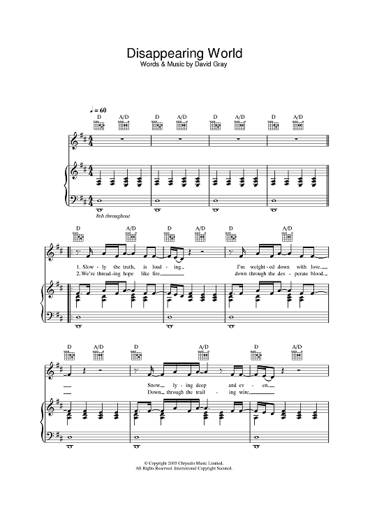 "Disappearing World" Sheet Music by David Gray