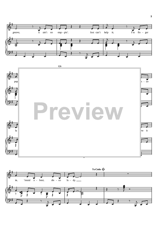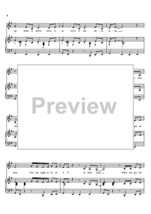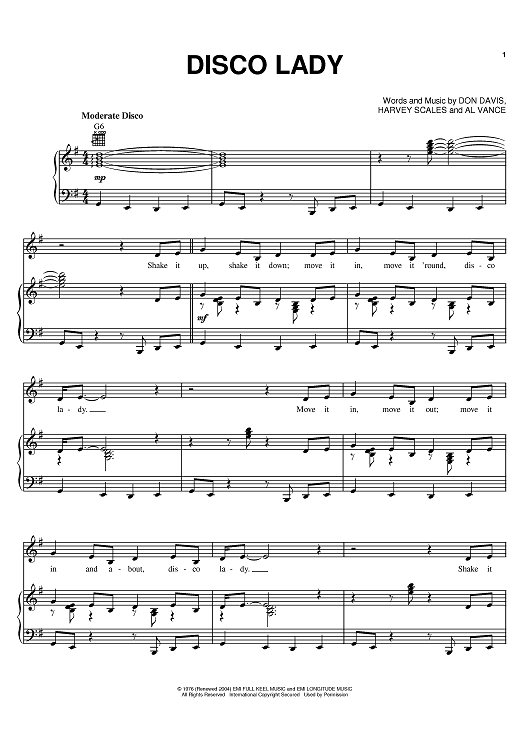 Digital Sheet Music for Disco Lady by Johnnie Taylor, Don Davis, Harvey Scales, Al Vance scored for Piano/Vocal/Chords; id:367915