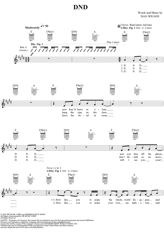 Digital Sheet Music for DND by Semisonic, Dan Wilson scored for Guitar Tab/Vocal; id:114077