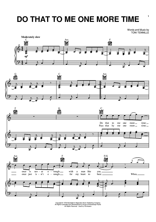 Digital Sheet Music for Do That To Me One More Time by Toni Tennille, Captain & Tennille scored for Piano/Vocal/Chords; id:395034