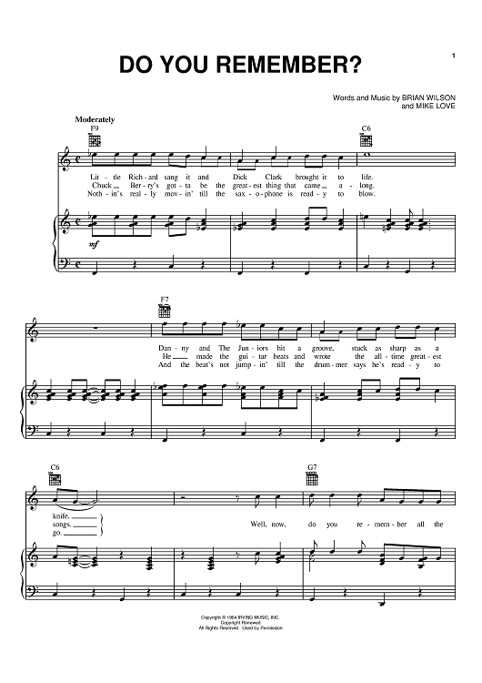 Digital Sheet Music for Do You Remember? by Brian Wilson, The Beach Boys, Mike Love scored for Piano/Vocal/Chords; id:370477