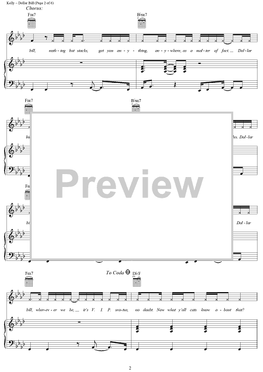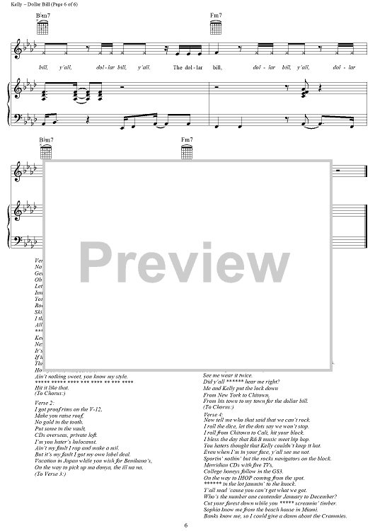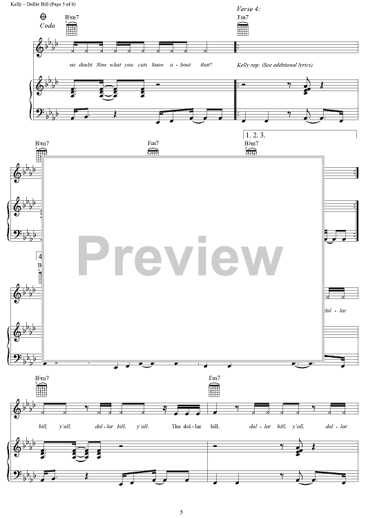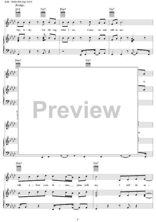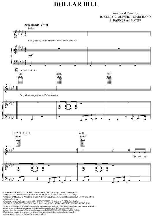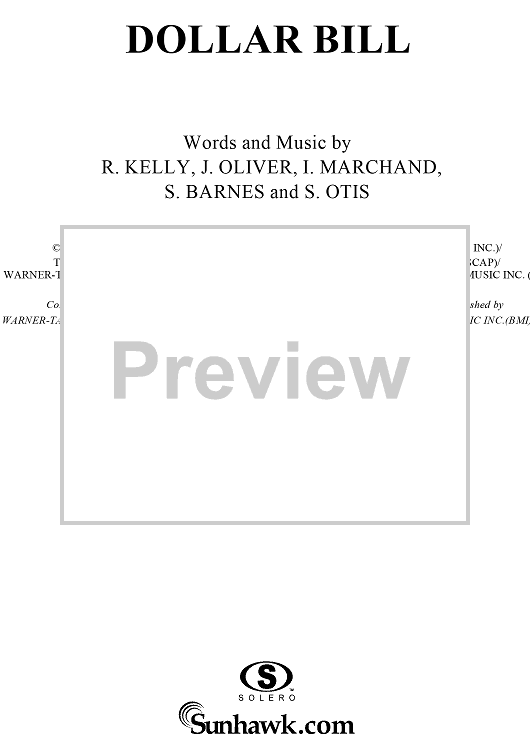 Digital Sheet Music for Dollar Bill by R. Kelly, I. Marchand, S. Otis, Samuel Barnes, Jean Claude Olivier scored for Piano/Vocal/Chords; id:249934