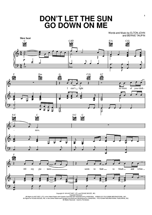 Digital Sheet Music for Don't Let The Sun Go Down On Me by Elton John, George Michael, Bernie Taupin scored for Piano/Vocal/Chords; id:368040