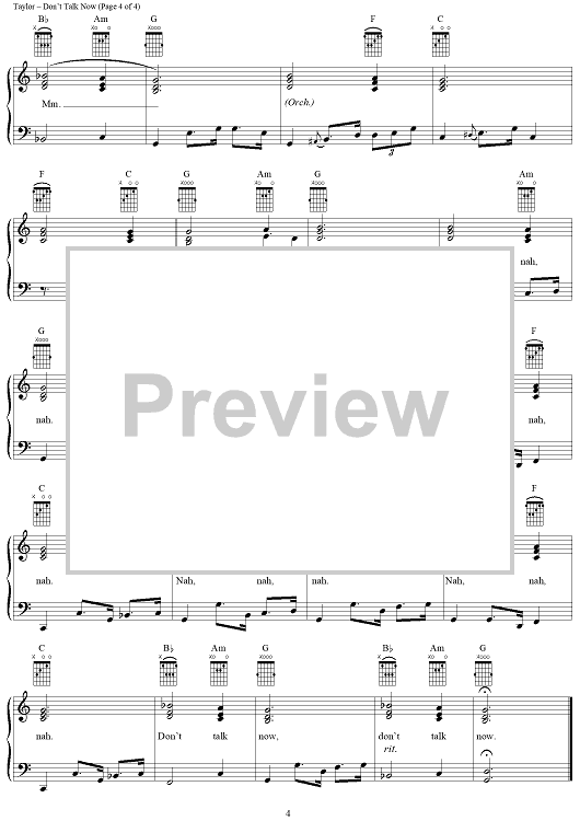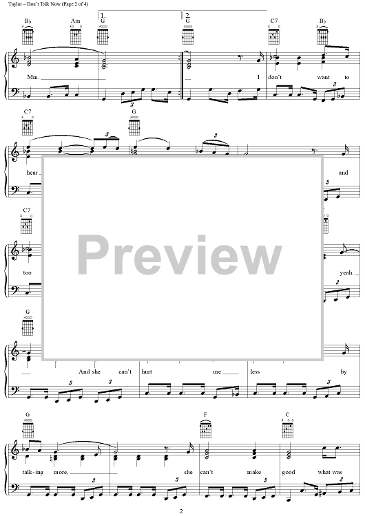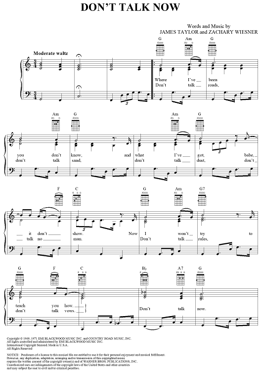 Digital Sheet Music for Don't Talk Now by James Taylor, Zachary Wiesner scored for Piano/Vocal/Chords; id:318744