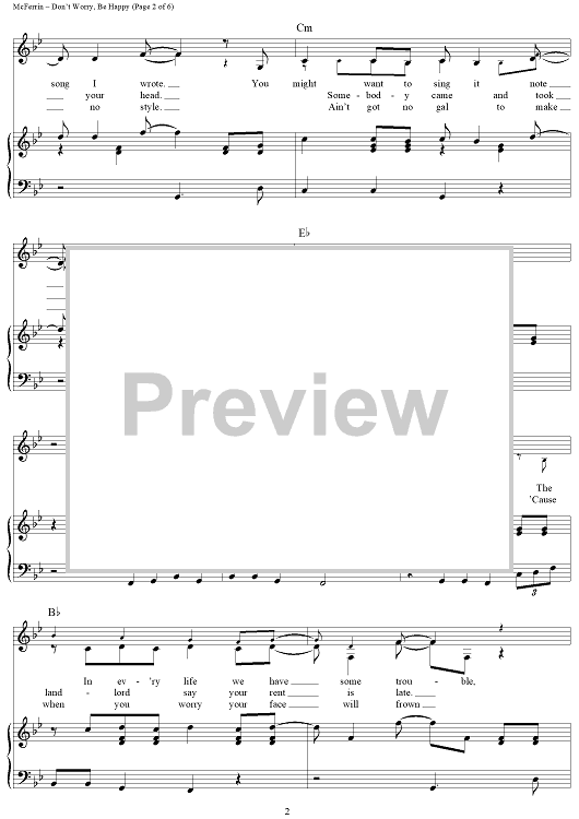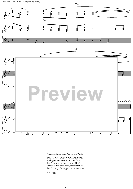 Digital Sheet Music for Don't Worry, Be Happy by Robert McFerrin, Jr., Bobby McFerrin scored for Piano/Vocal/Chords; id:315121