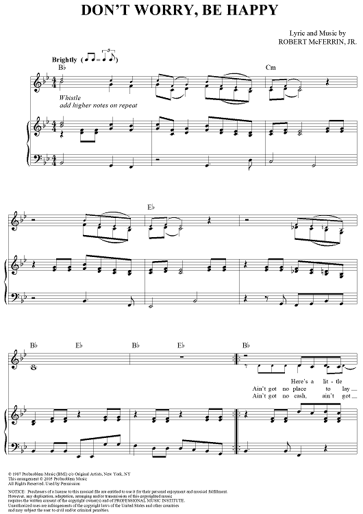 "Don't Worry, Be Happy" Sheet Music by Bobby McFerrin