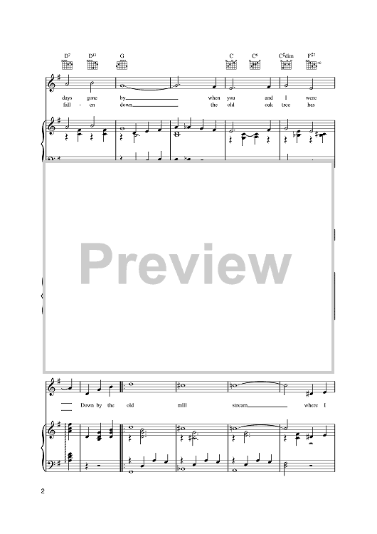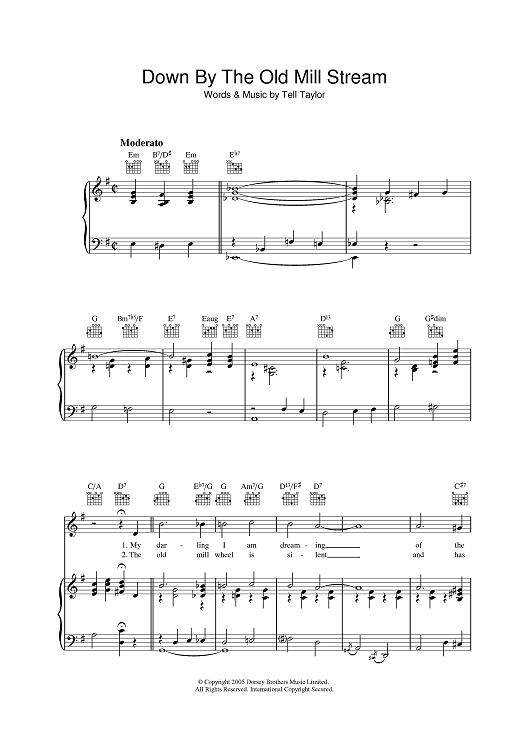 Digital Sheet Music for Down By The Old Mill Stream by Tell Taylor scored for Piano/Vocal/Chords; id:395745