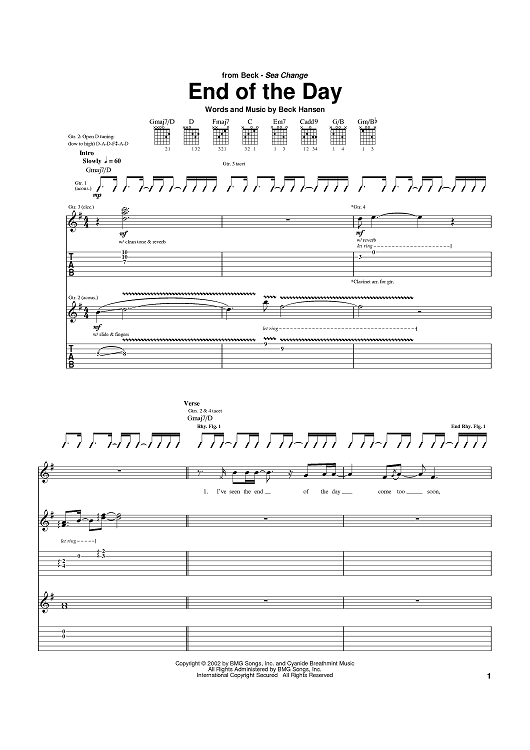Digital Sheet Music for End Of The Day by Beck scored for Guitar Tab; id:372689