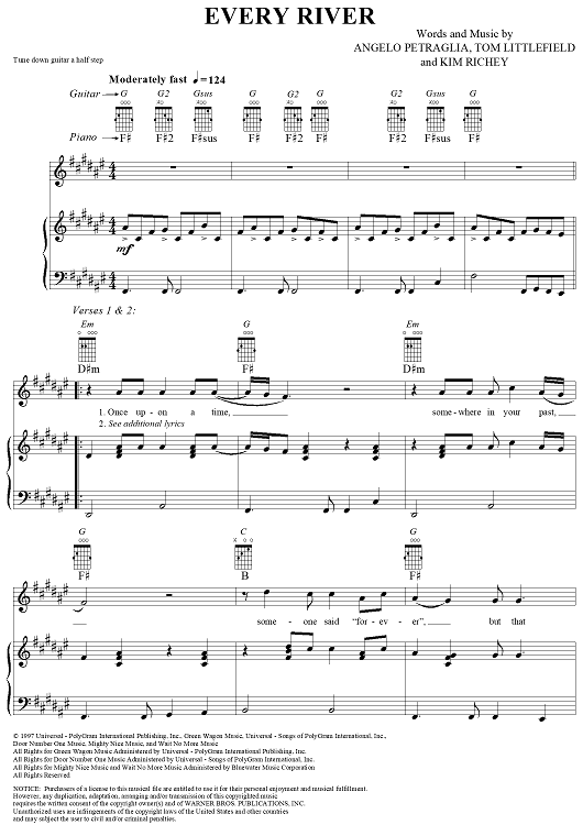 Digital Sheet Music for Every River by Kim Richey, Tom Littlefield, Brooks & Dunn, Angelo Petraglia scored for Piano/Vocal/Chords; id:293370