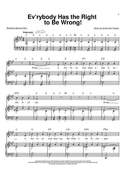 Digital Sheet Music for Ev'rybody Has The Right To Be Wrong] by Sammy Cahn, Jimmy Van Heusen scored for Piano/Vocal/Chords; id:370713