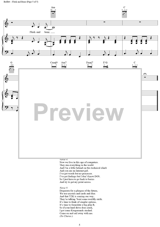Digital Sheet Music for Flesh and Bone by Mike Taylor, Mike Utley, Mac McAnally, Jimmy Buffett scored for Piano/Vocal/Chords; id:241681