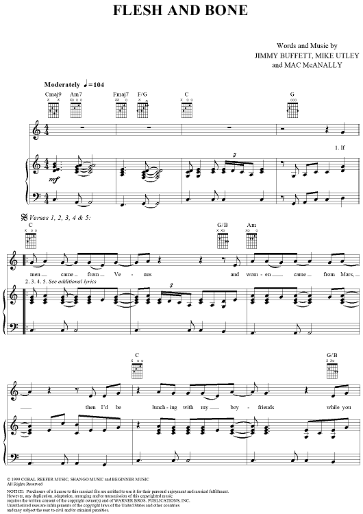 "Flesh and Bone" Sheet Music by Jimmy Buffett