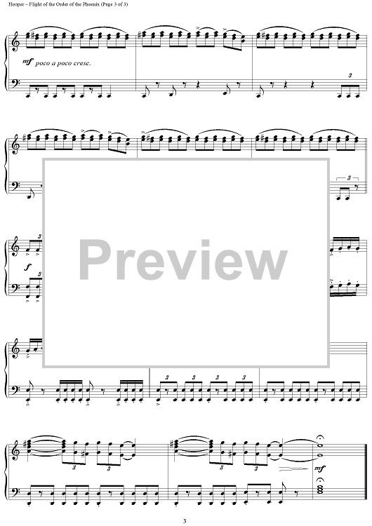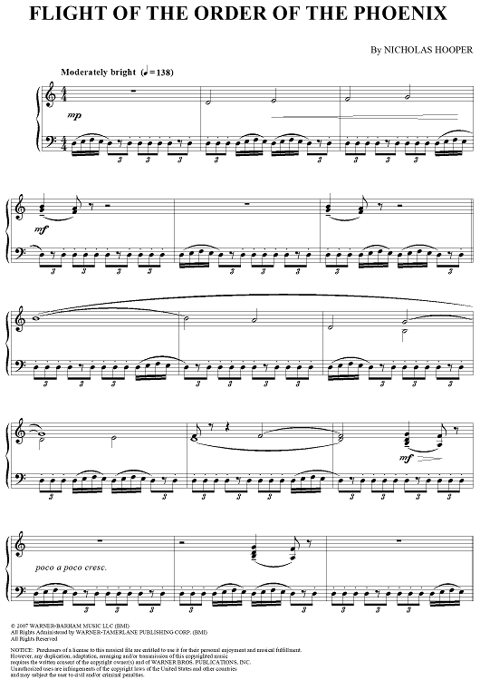 Digital Sheet Music for Flight of the Order of the Phoenix by Nicholas Hooper scored for Piano Solo; id:363032