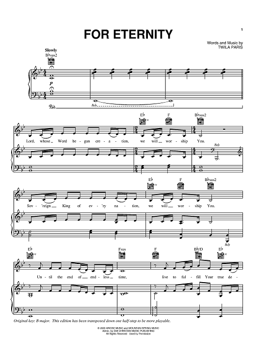 Digital Sheet Music for For Eternity by Twila Paris scored for Piano/Vocal/Chords; id:370953