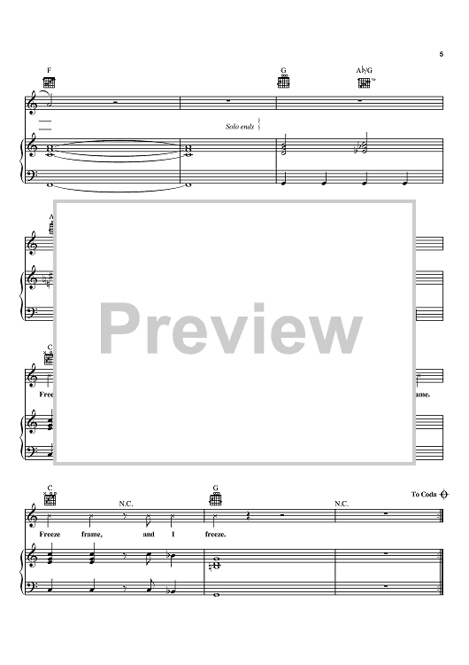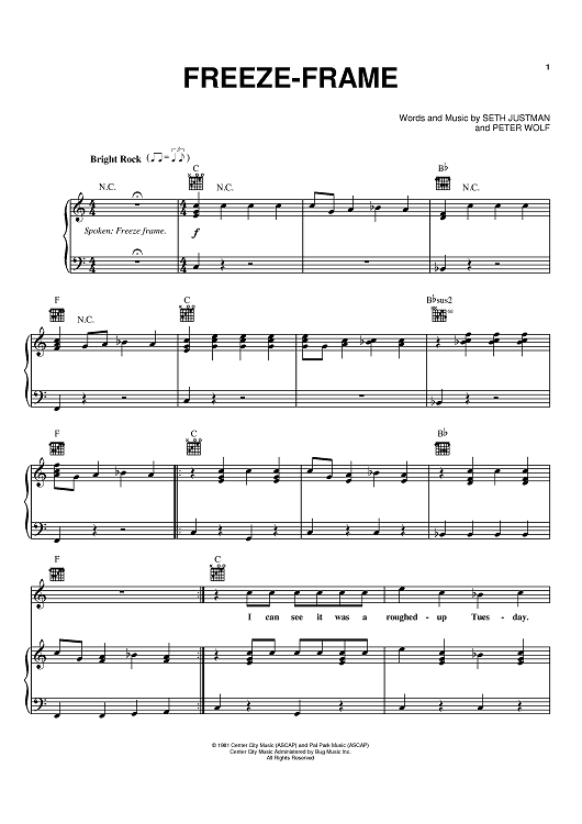 Digital Sheet Music for Freeze Frame by Peter and the Wolf, The J. Geils Band, Seth Justman scored for Piano/Vocal/Chords; id:368408