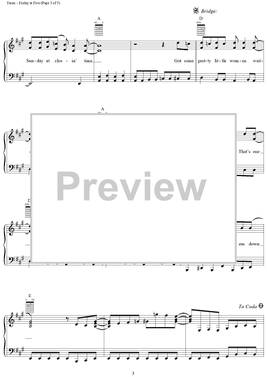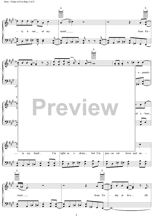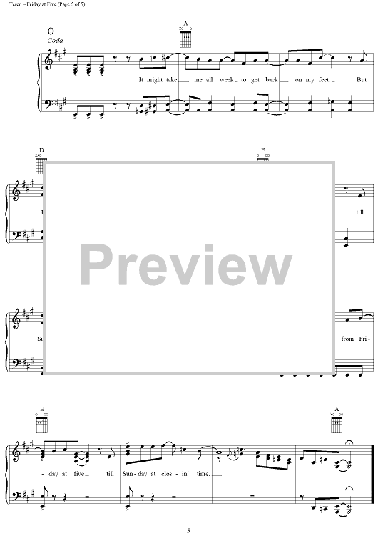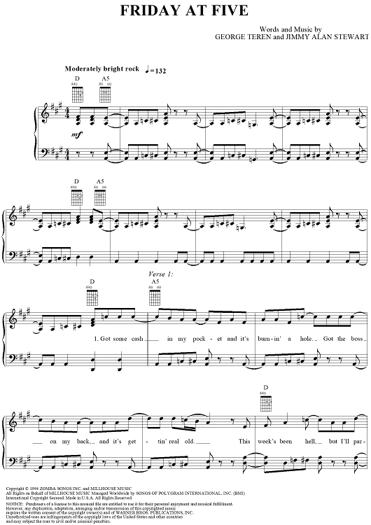 Digital Sheet Music for Friday at Five by John Michael Montgomery, George Teren, Jimmy Alan Stewart scored for Piano/Vocal/Chords; id:143710
