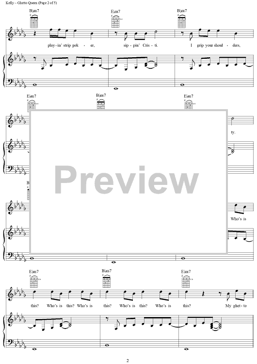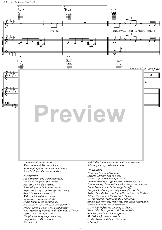Digital Sheet Music for Ghetto Queen by R. Kelly, R. Leverson, M. King, Corey Johnson, W. Martin scored for Piano/Vocal/Chords; id:249965