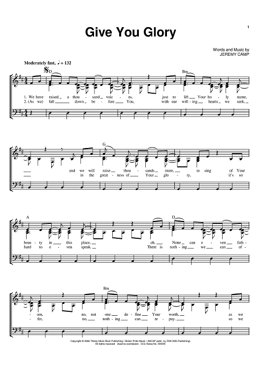 Digital Sheet Music for Give You Glory by Jeremy Camp scored for Piano/Vocal/Chords; id:395114
