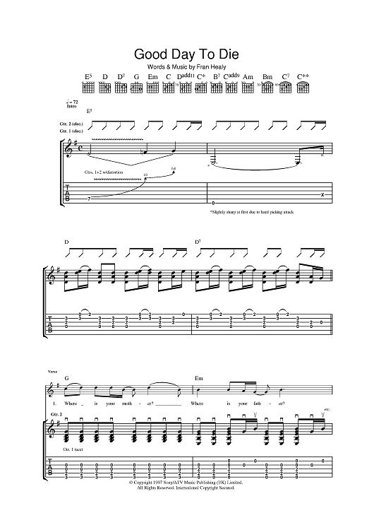 Digital Sheet Music for Good Day To Die by Fran Healy, Travis scored for Guitar Tab; id:393893